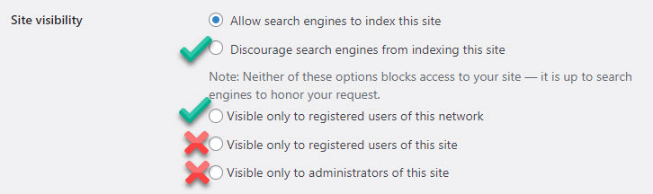 Site privacy/visibility settings: